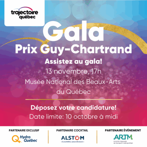 Le Gala des Prix Guy-Chartrand est de retour pour sa 21e édition et notre partenaire @Trajectoire Québec est à la recherche du Citoyen.ne mobile de l’année ainsi que d’organisations ayant porté des projets inspirants en mobilité durable en 2024-2025! 🤩
